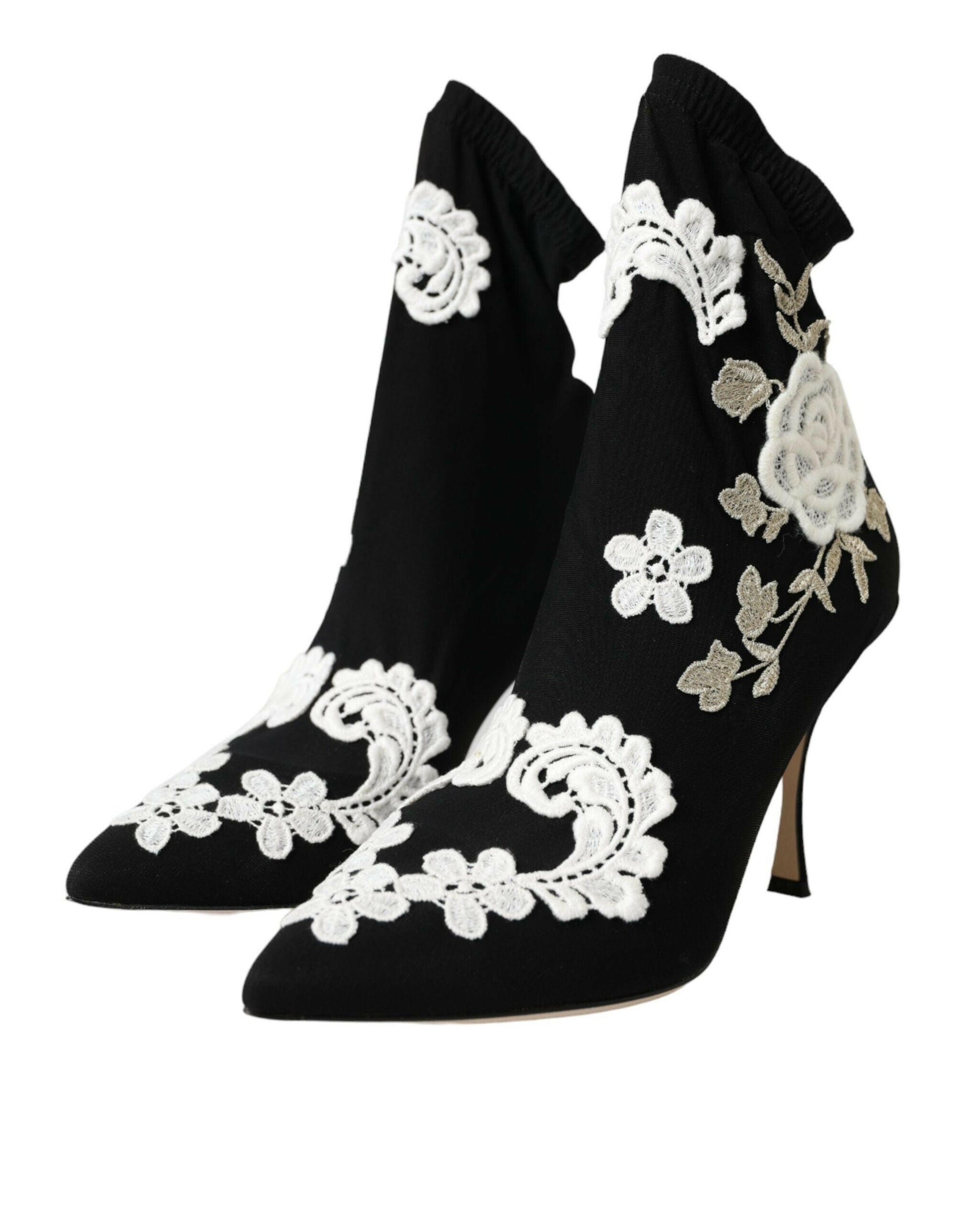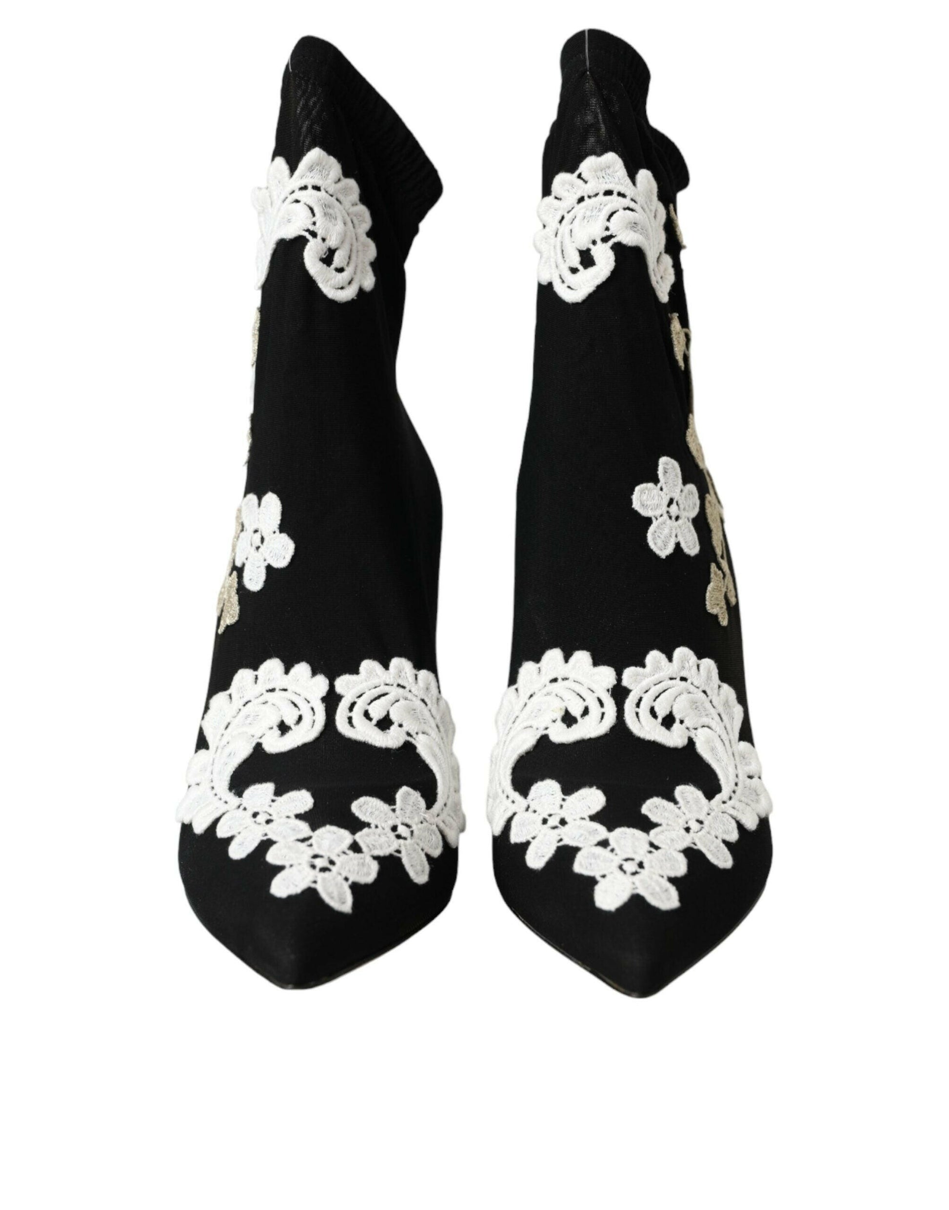 Dolce & Gabbana Black White Embroidery Slip On Boots Shoes