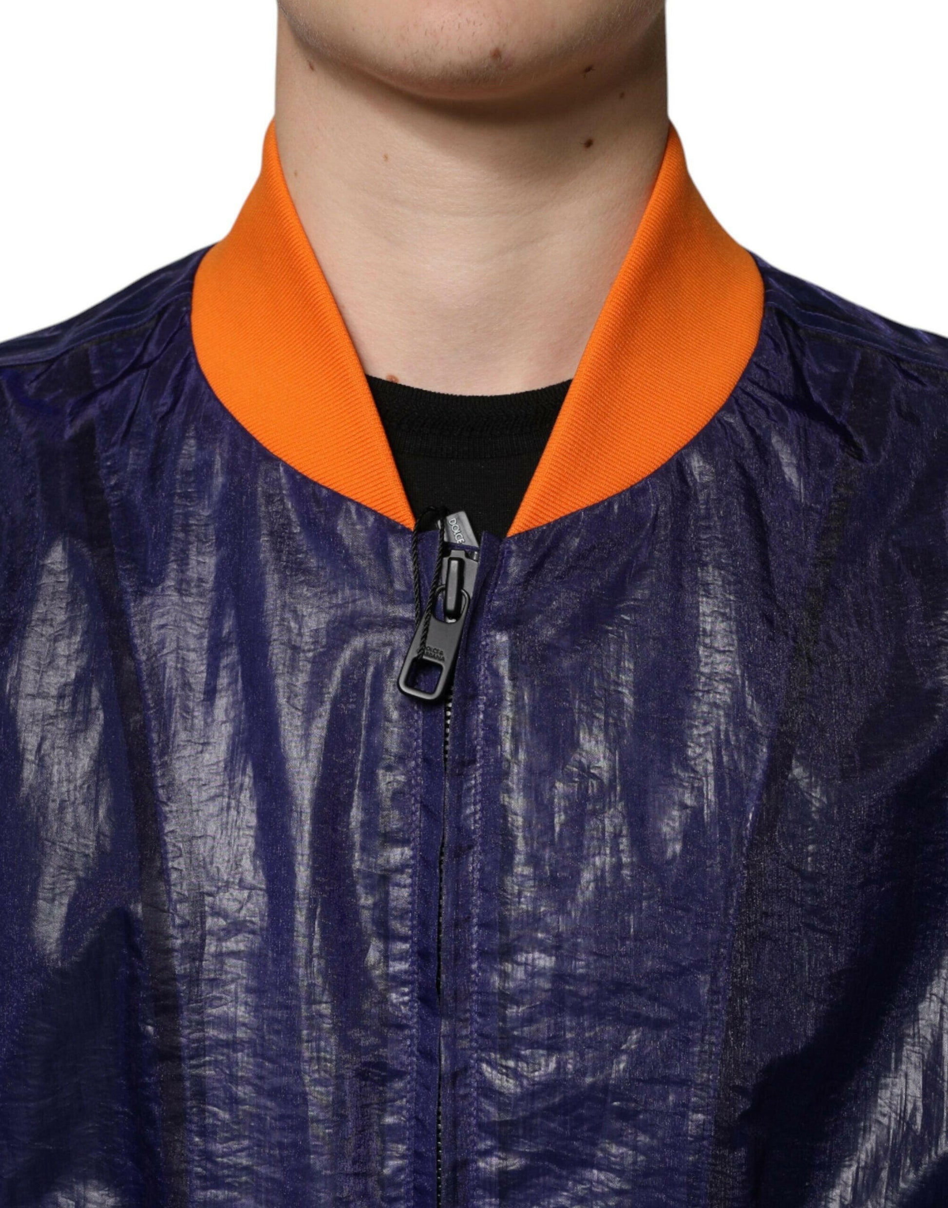 Dolce & Gabbana Blue Cotton Stretch Full Zip Bomber Jacket