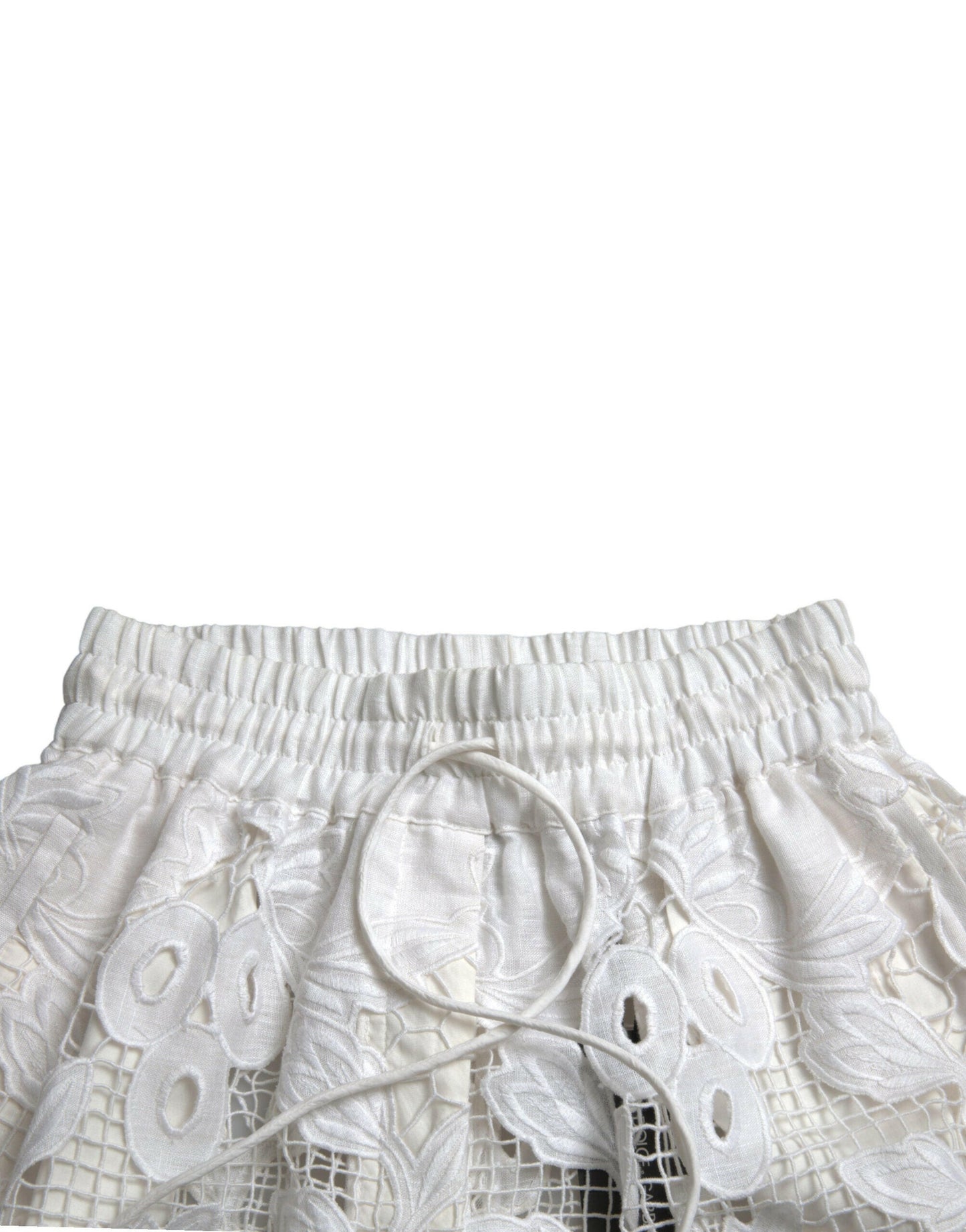 Gorgeous brand new, 100% Authentic Dolce & Gabbana shorts. Featuring lace, no appliqués, solid color, high waisted, elasticised waist, regular fit, drawstring closure, no pockets. Model: High waist shorts Colour: White Material: 90% Cotton 10% Polyester Drawstring closure Made in Italy
