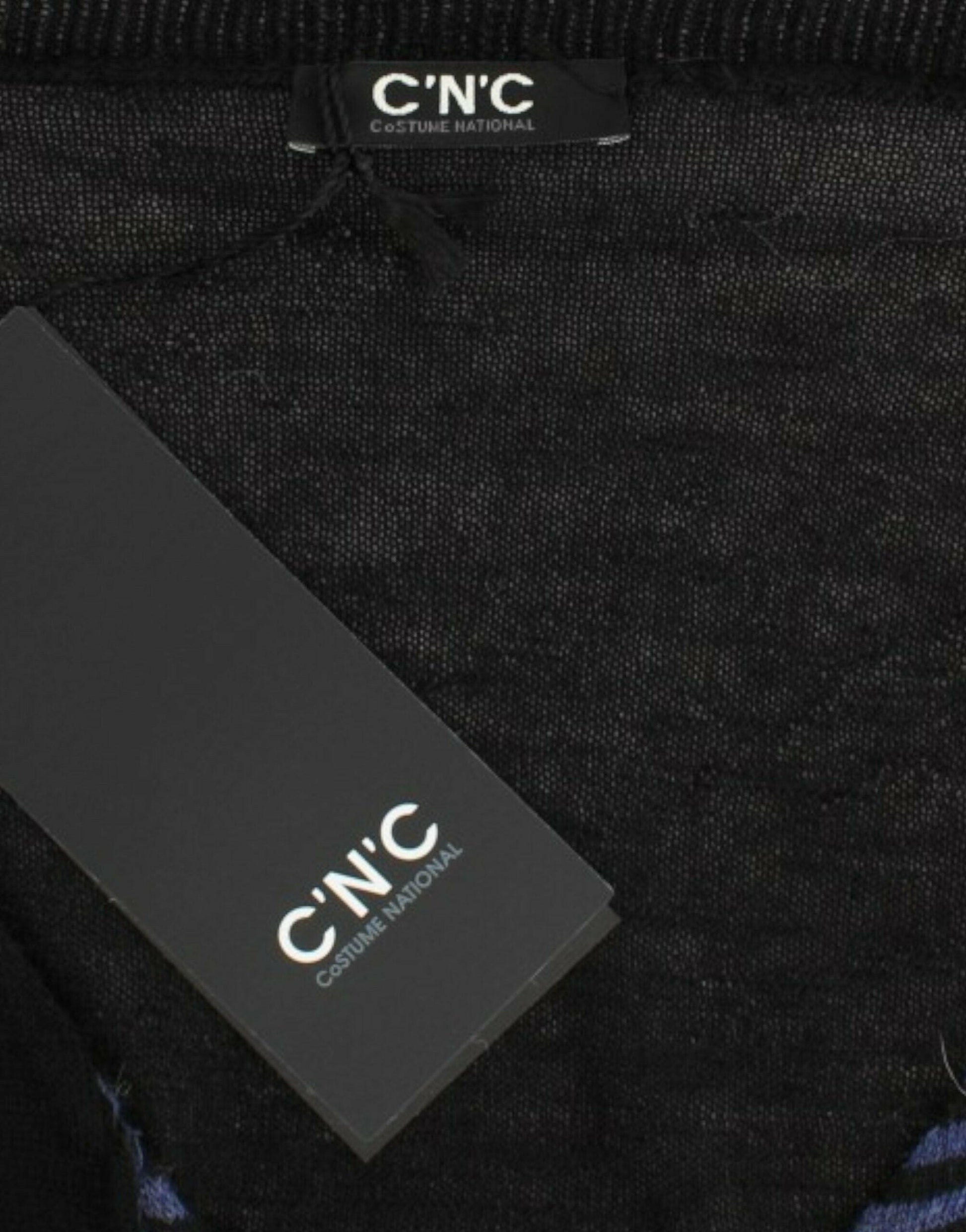 Gorgeous brand new with tags, 100% Authentic C’N’C Striped V-Neck Sweater. Material: 50% Acrylic, 25% Wool, 15% Alpaca, 10% Nylon. Color: Black, Blue Model: V-neck Sweater Logo details Original tags and store bag follows.