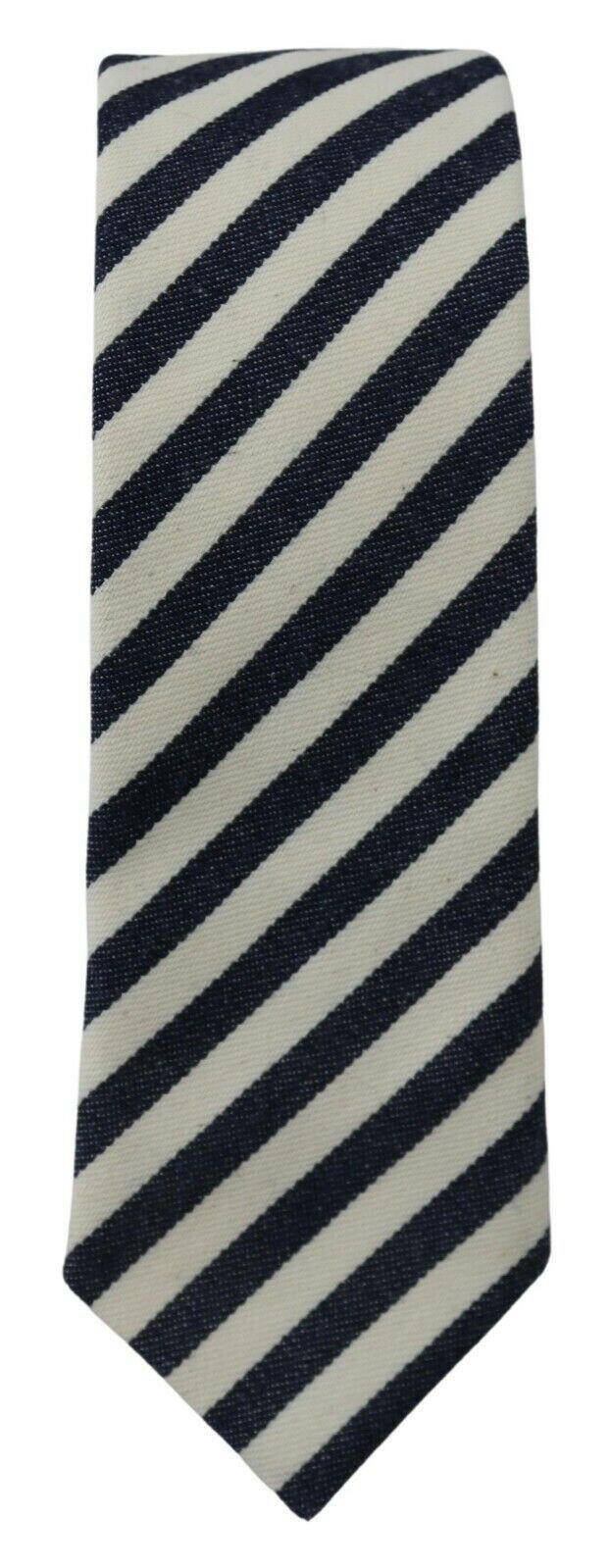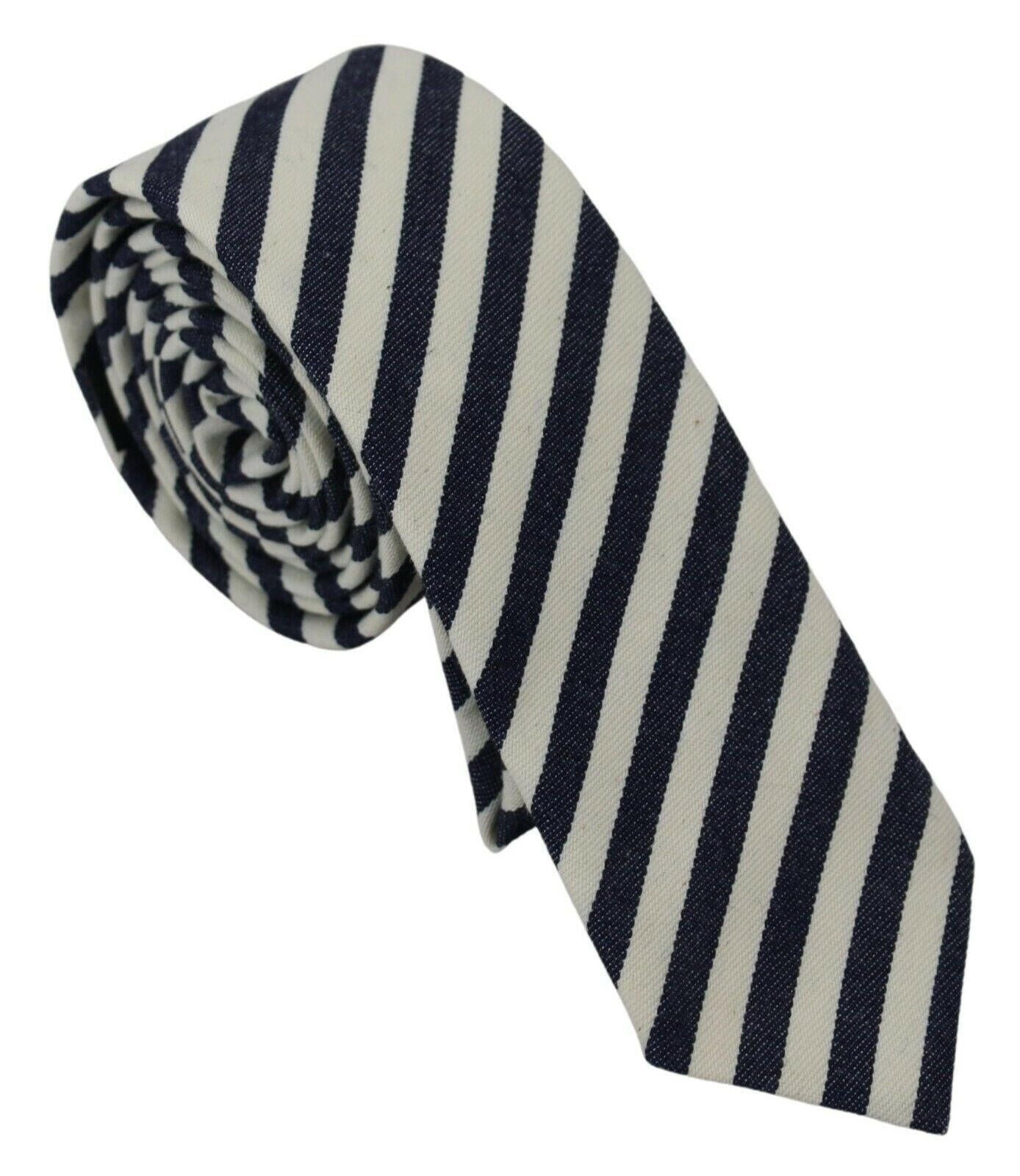 Denny Rose White Blue Striped Classic Adjustable Men Silk Tie