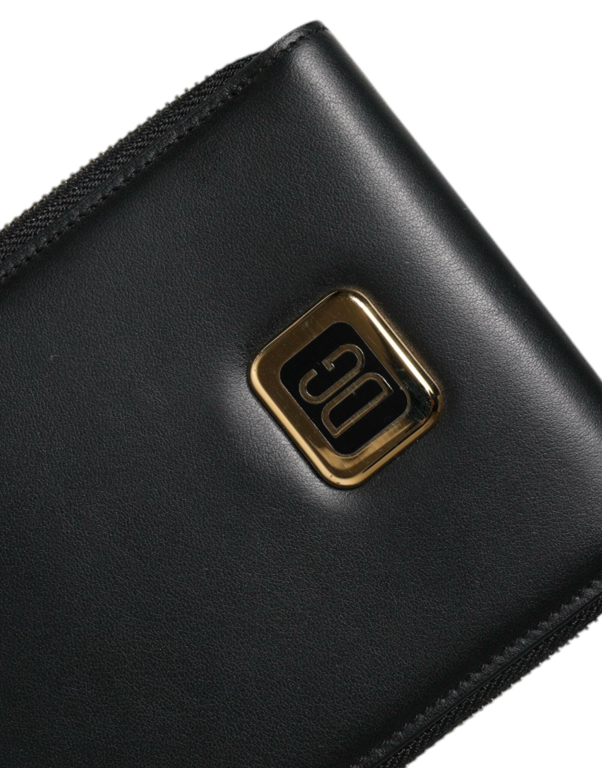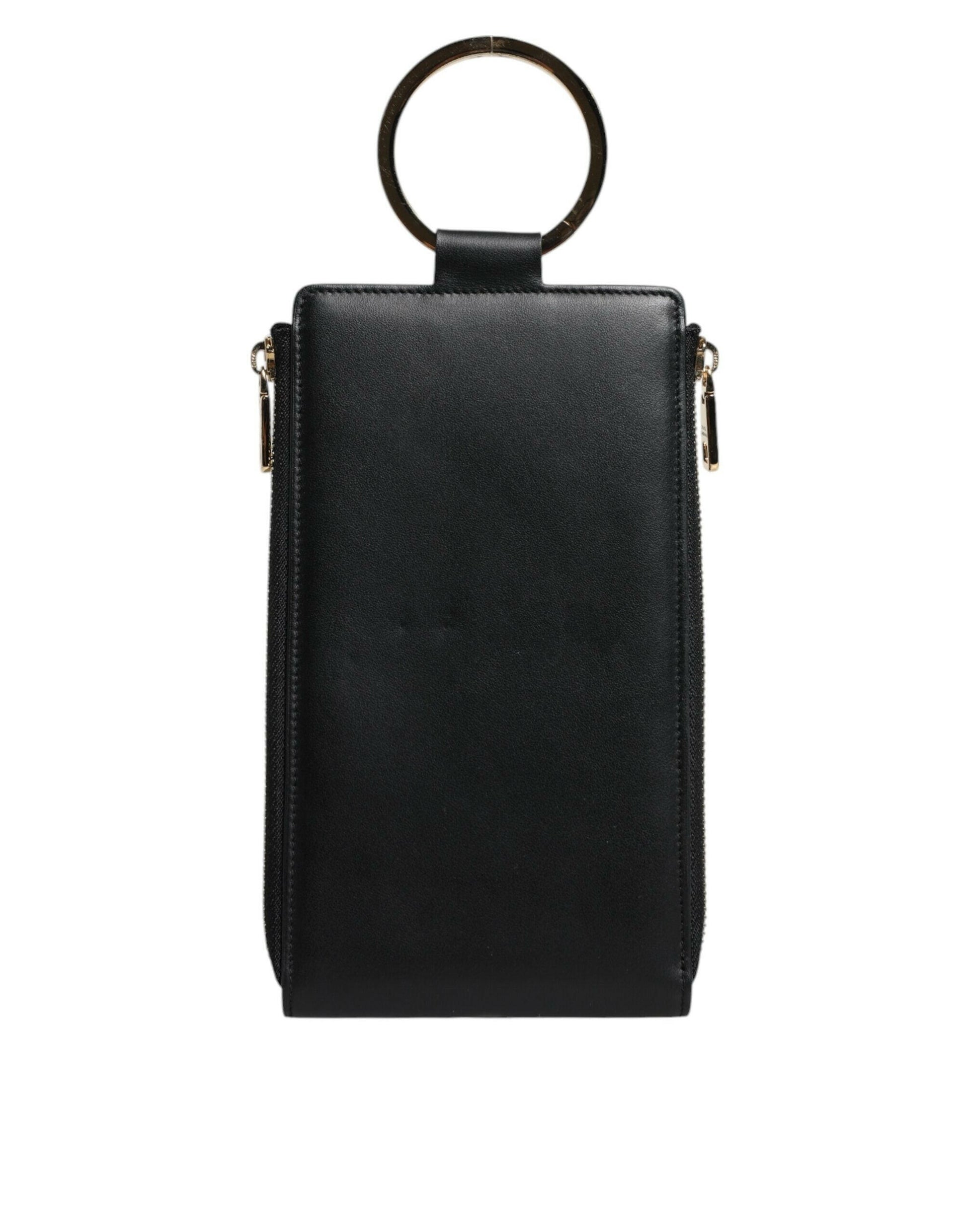 Dolce & Gabbana Black Leather Logo Plaque Neck Strap Card Coin Wallet