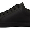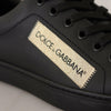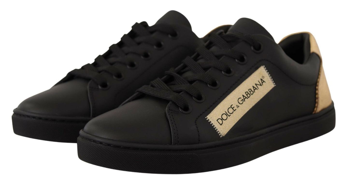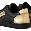 Dolce & Gabbana Black Gold Leather Low Top Sneakers Womens Shoes