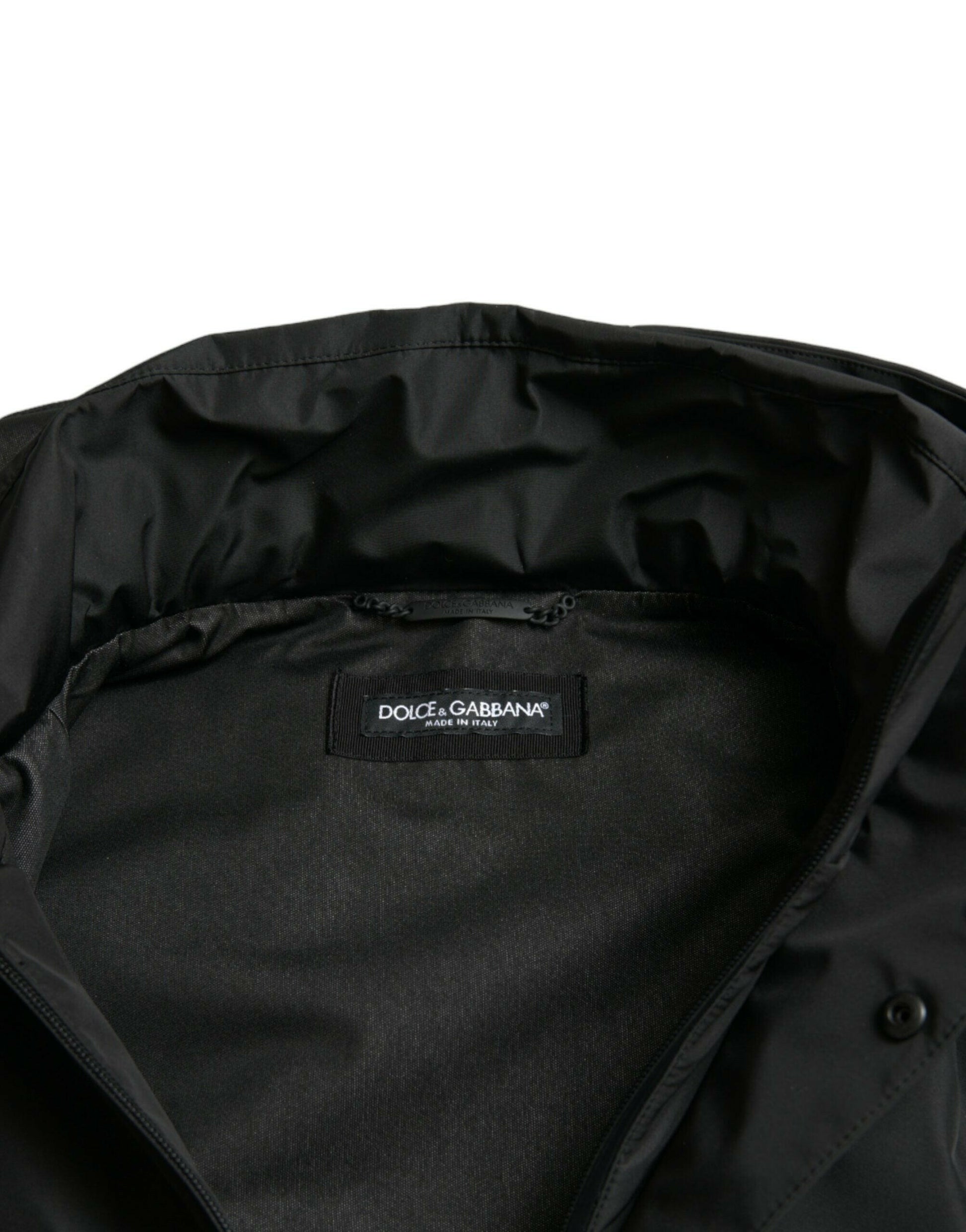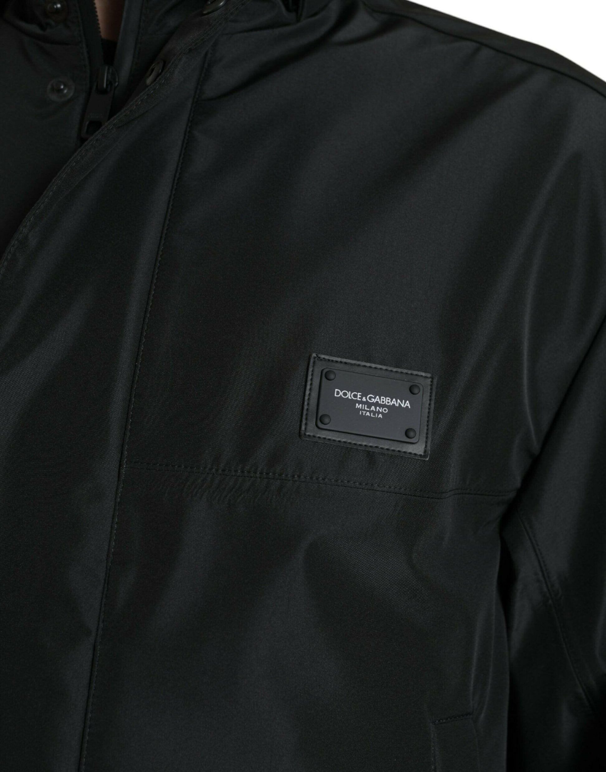 Dolce & Gabbana Black Polyester Logo Plaque Hooded Jacket