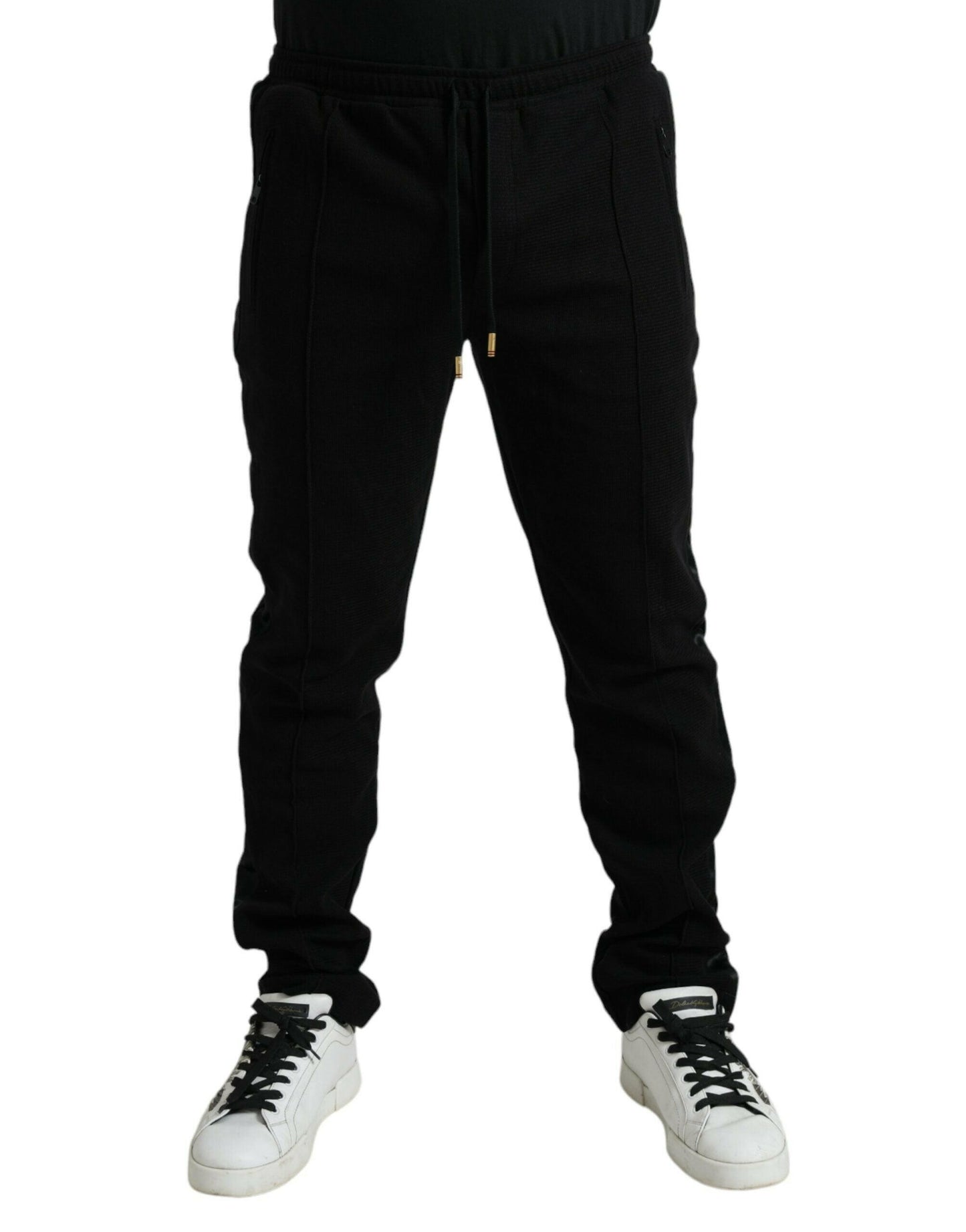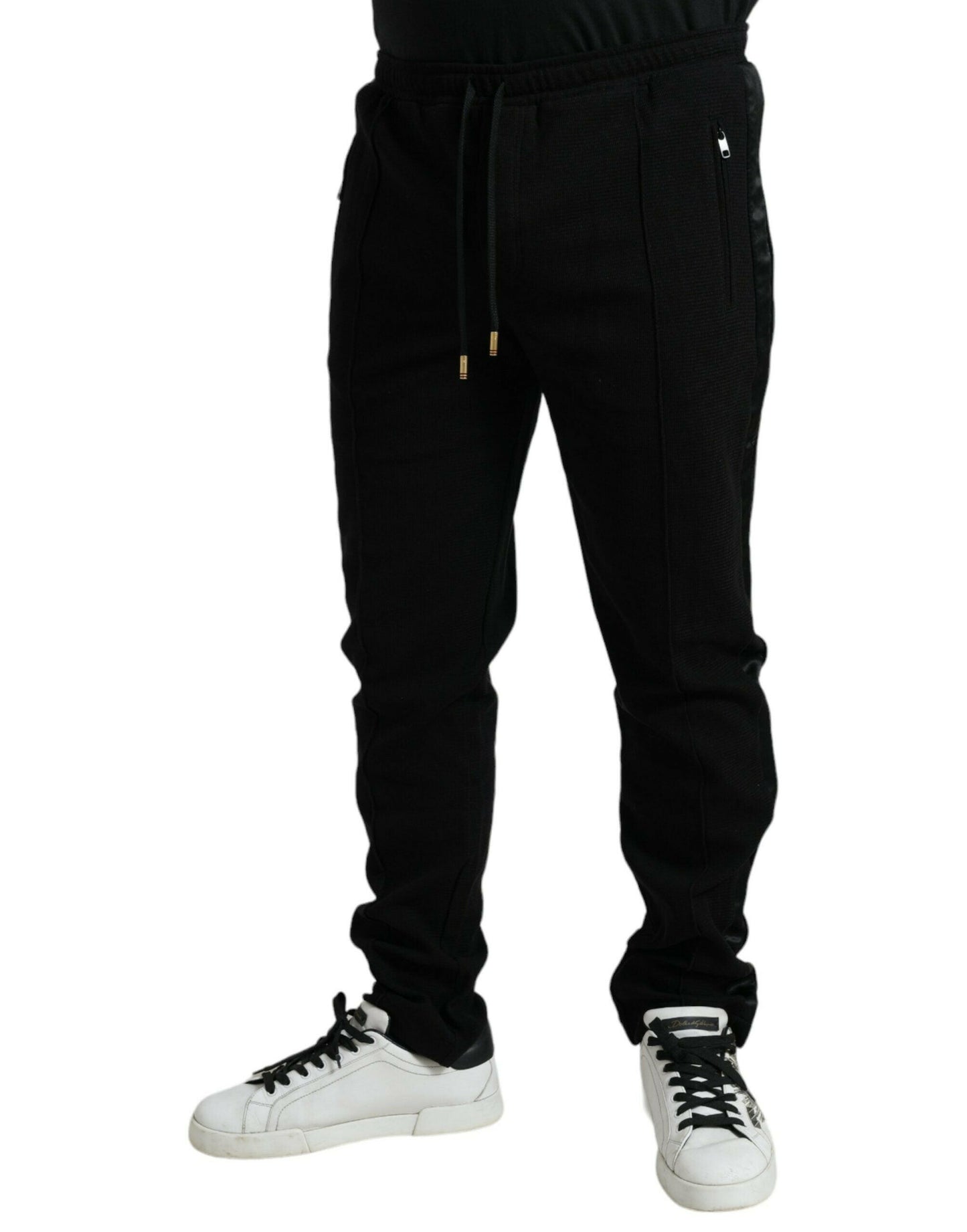 Gorgeous, brand new with tags 100% Authentic Dolce & Gabbana cotton blend jogger pants Model: Jogger pants Colour: Black Materials: 88% Cotton 6% Polyester 4% Nylon 2% Elastane Elastic waist and drawstring closure Logo Details Made in Italy