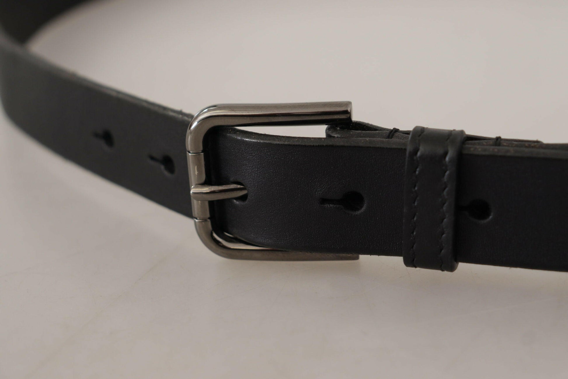 Dolce & Gabbana Black Calf Leather Logo Engraved Metal Buckle Belt