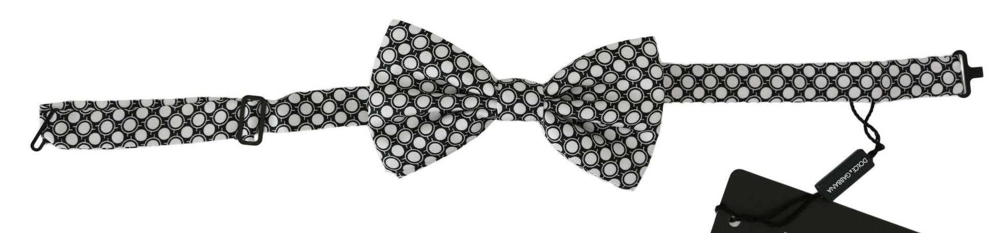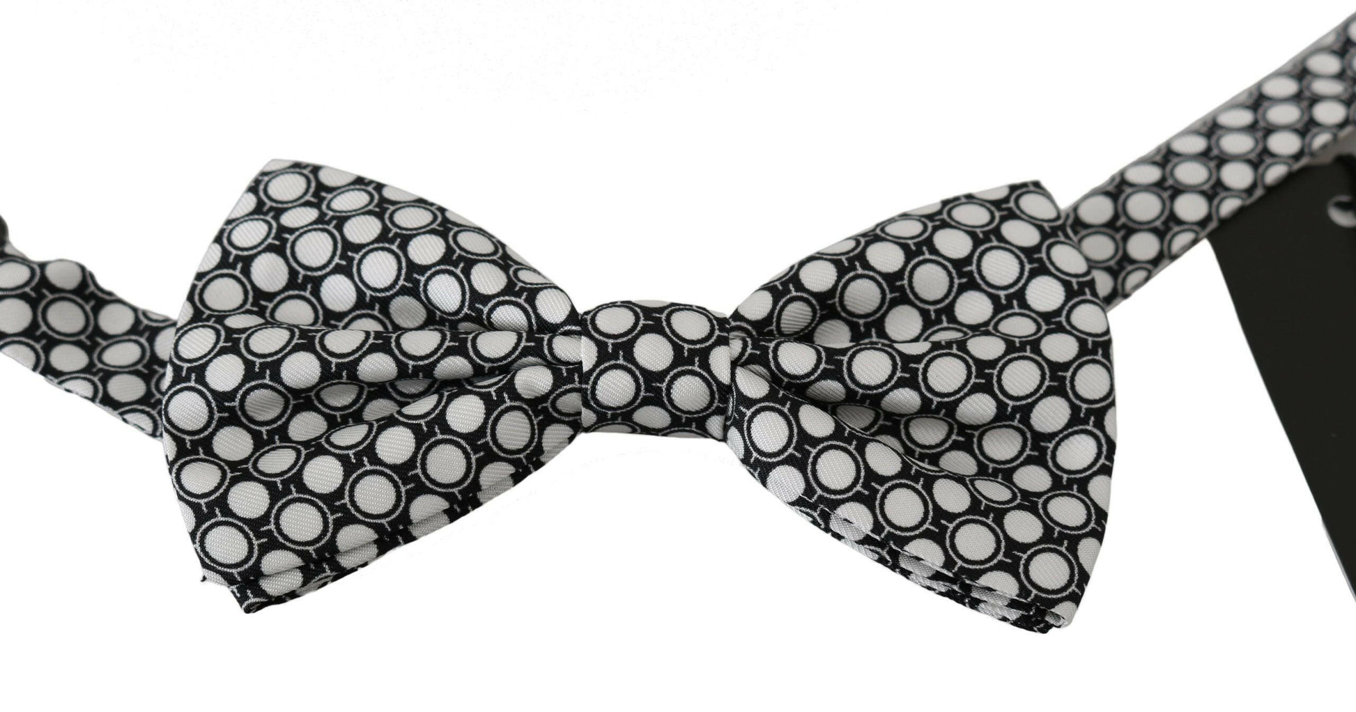 Dolce & Gabbana Men Black White Circles Adjustable Neck Papillon Bow Tie