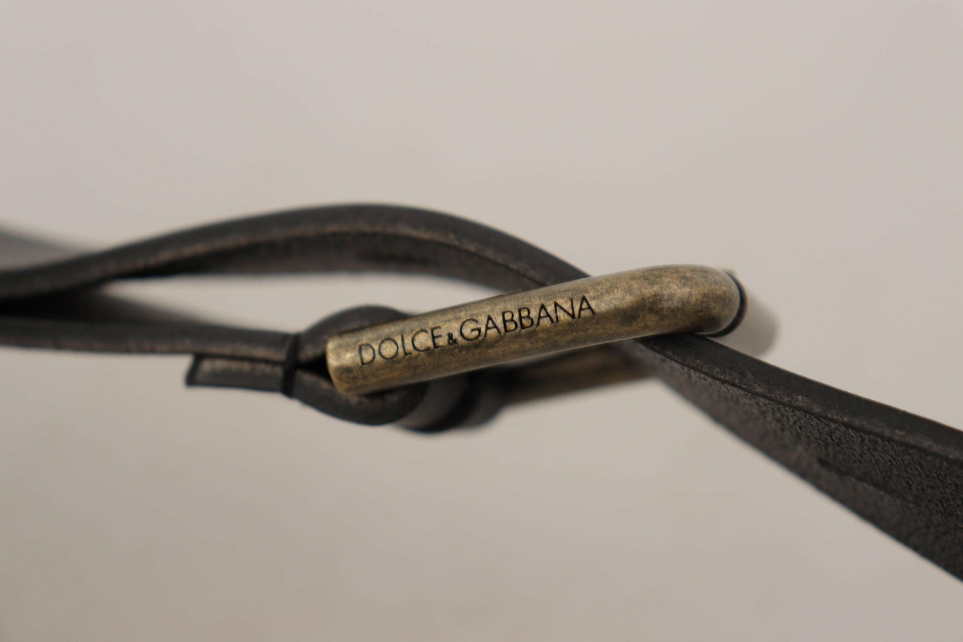 Dolce & Gabbana Black Calf Leather Logo Brass Metal Buckle Belt