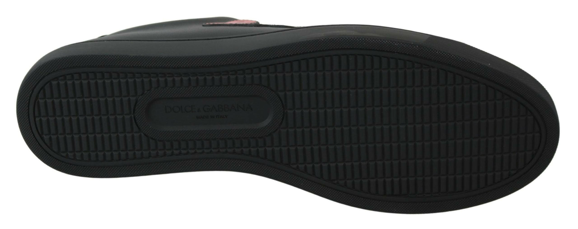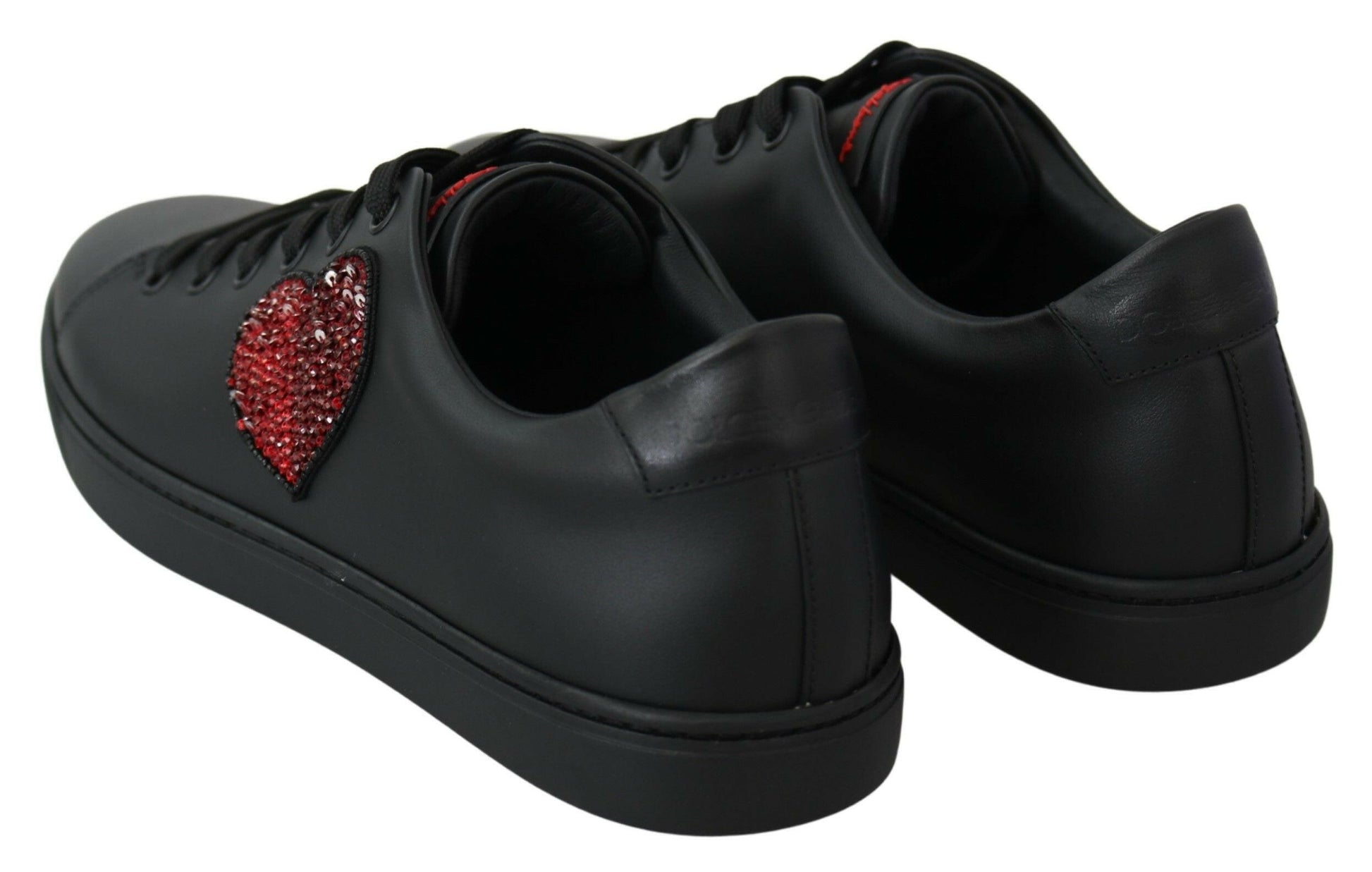 Dolce & Gabbana Black Leather Love Heart Sneakers Womens Shoes