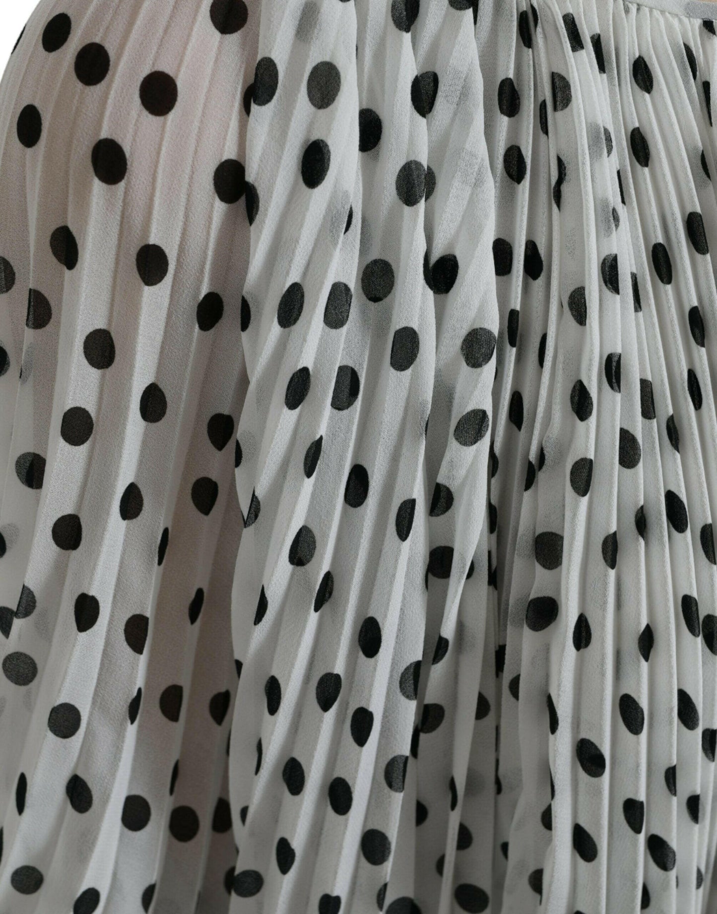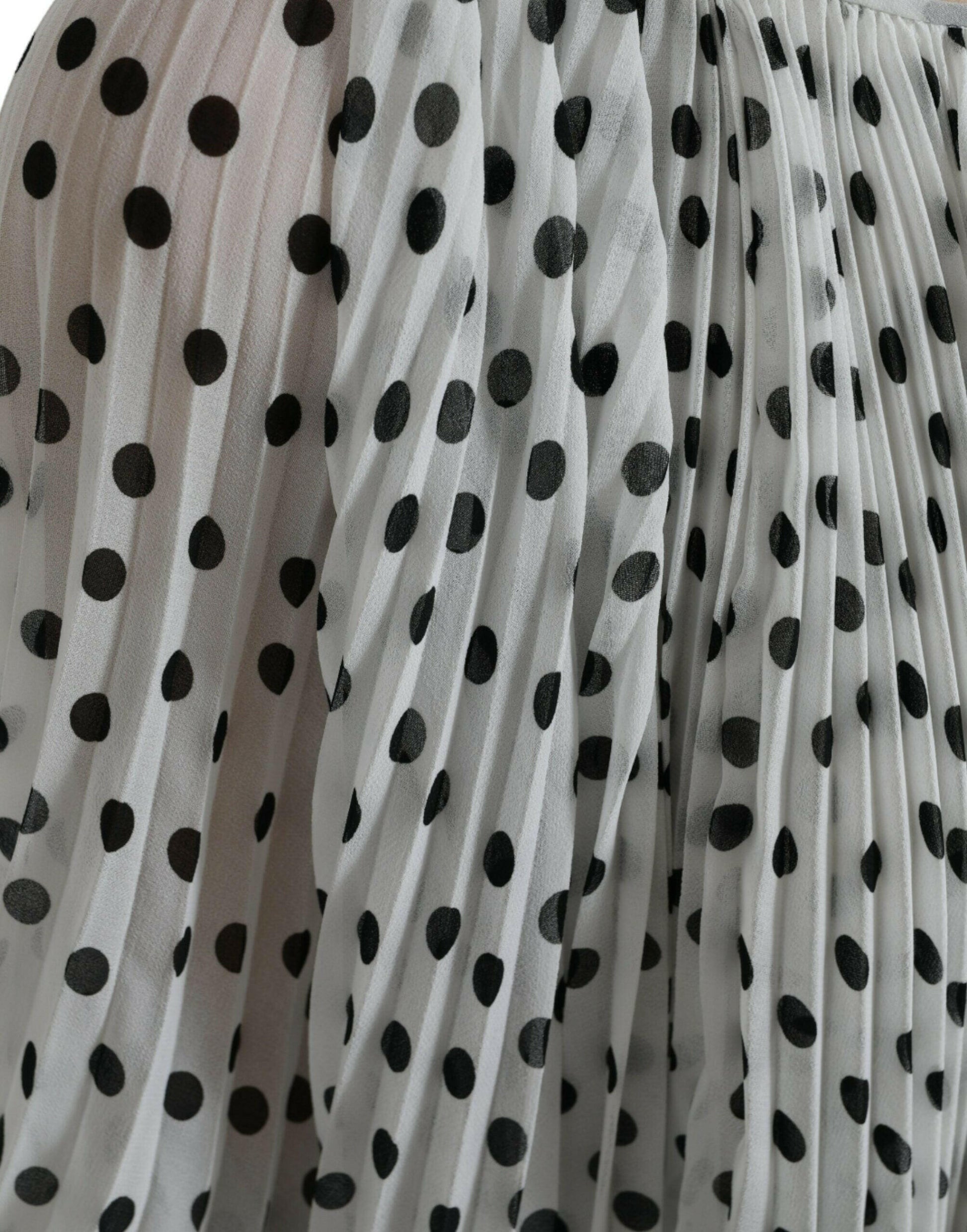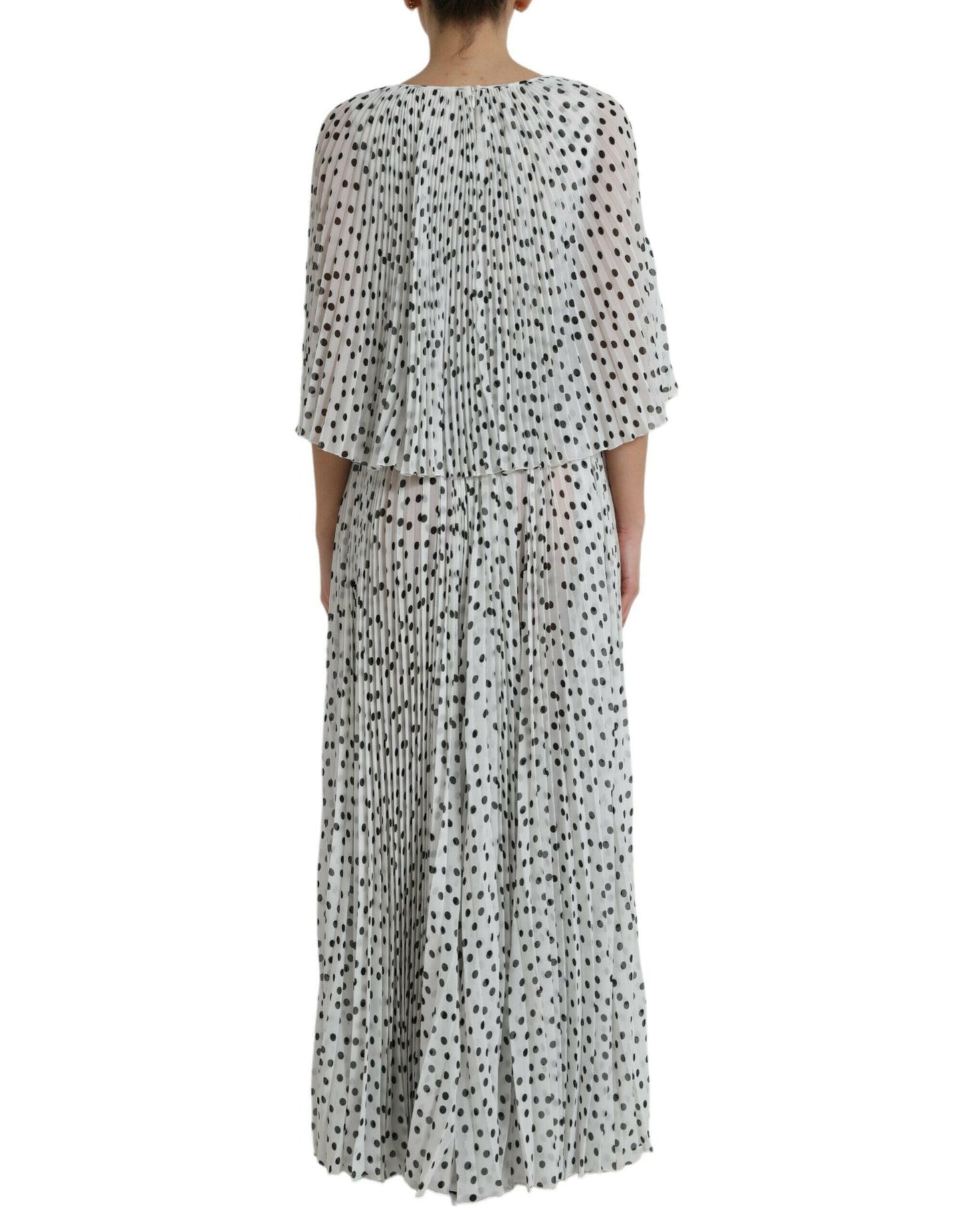 Gorgeous brand new with tags, 100% Authentic Dolce & Gabbana polka dots maxi dress. Made of polyester. Model: Maxi dress Color: White, Black Zipper closure Logo details Made in Italy Material: 100% Polyester Lining: 81% Silk 11% Cotton 5% Elastane 3% Nylon
