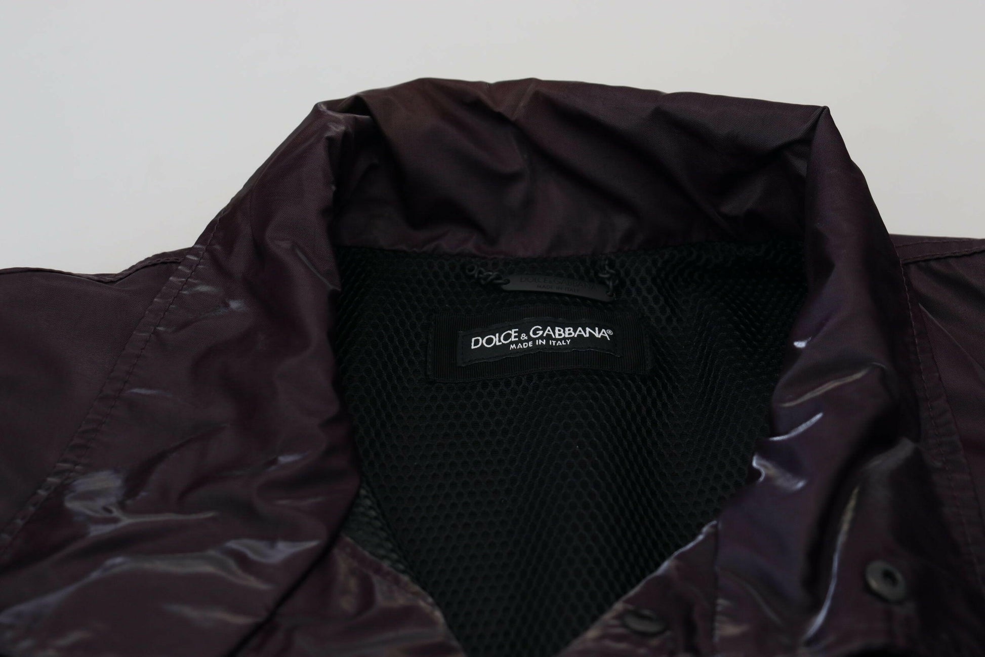 Absolutely stunning, 100% Authentic, brand new with tags Dolce & Gabbana collared biker jacket. Full-button closure. Model: Biker jacket Color: Purple Full button closure Logo details Made in Italy Material: 100% Nylon Lining: 64% Polyester 20% Silk 11% Acetate 5% Nylon