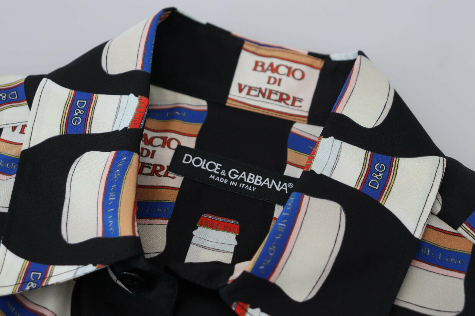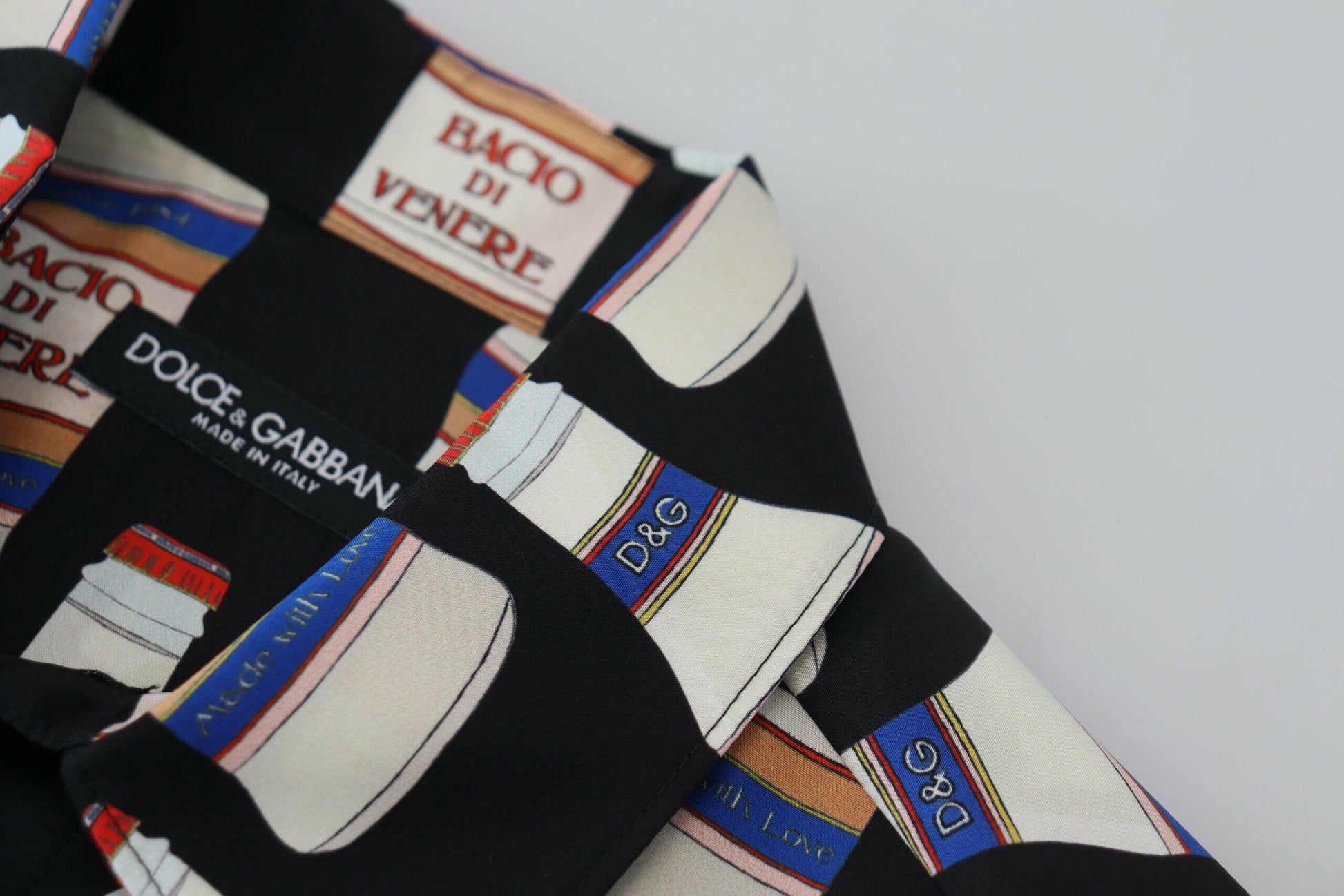 Dolce & Gabbana Black Silk Printed Collared Men Casual Shirt