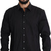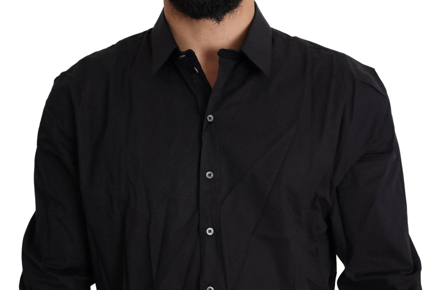 Absolutely stunning, 100% Authentic, brand new with tags Dolce & Gabbana SICILIA black dress shirt made of fine soft cotton stretch. Features a spread collar and one-button barrel cuffs.