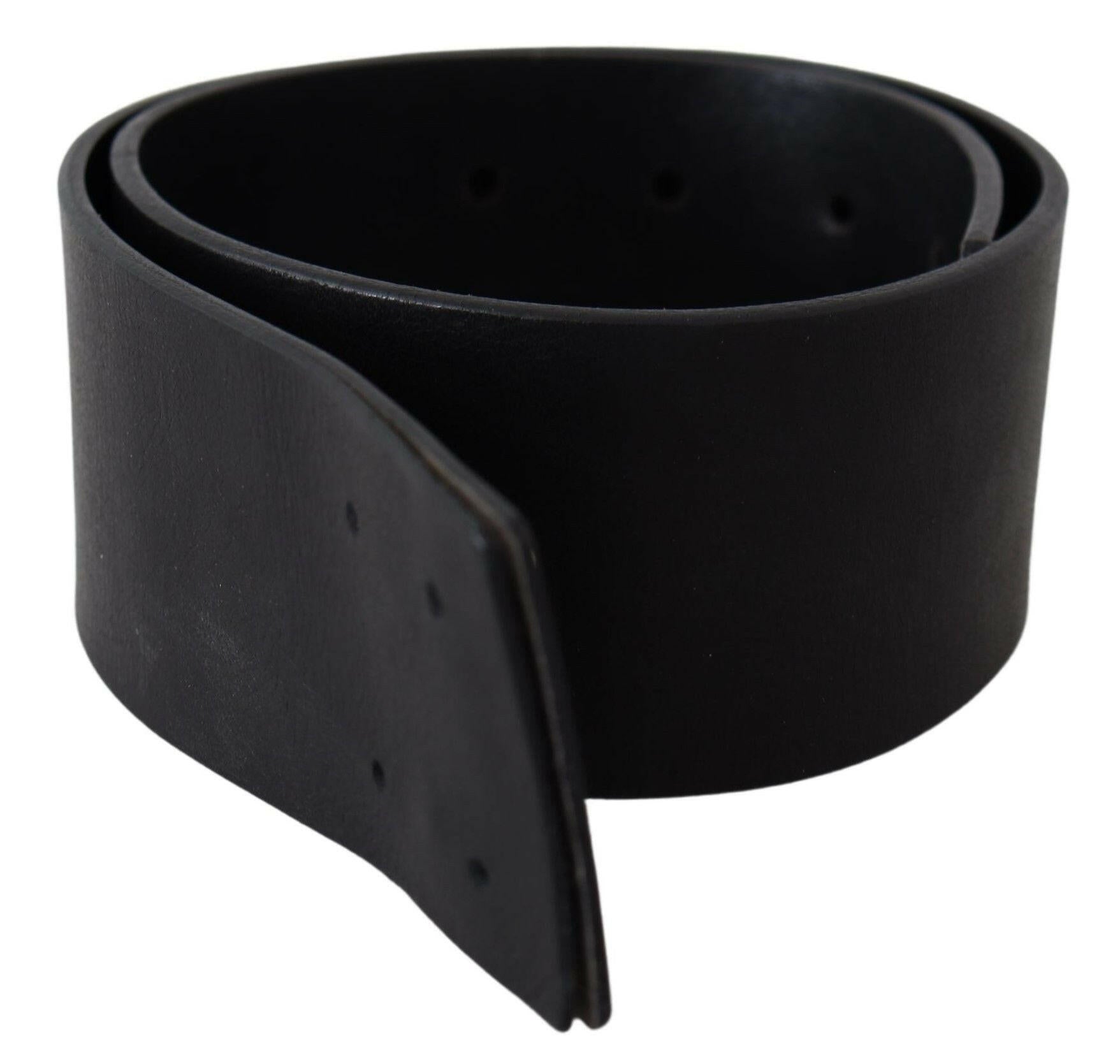 is crafted from leather fabric, this stylish belt featuring solid wide black design and no buckle fastening.