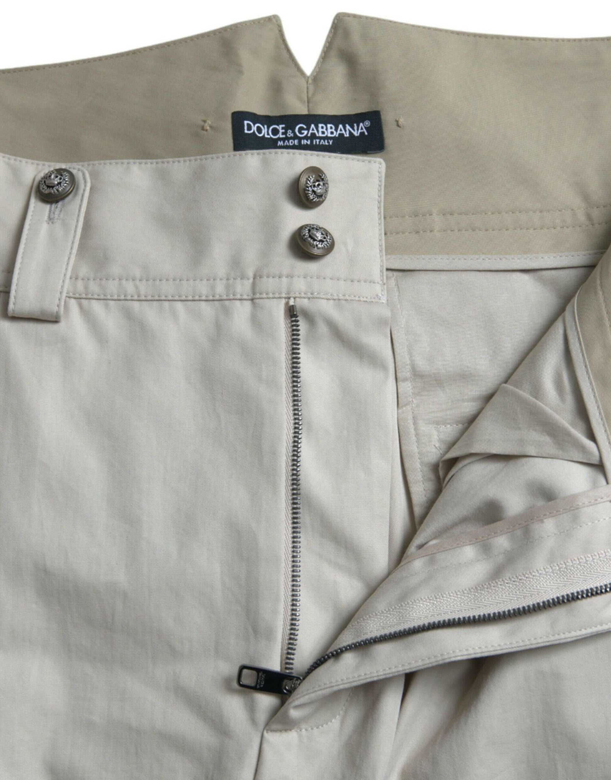 Dolce & Gabbana Beige Cotton High Waist Tapered Pants