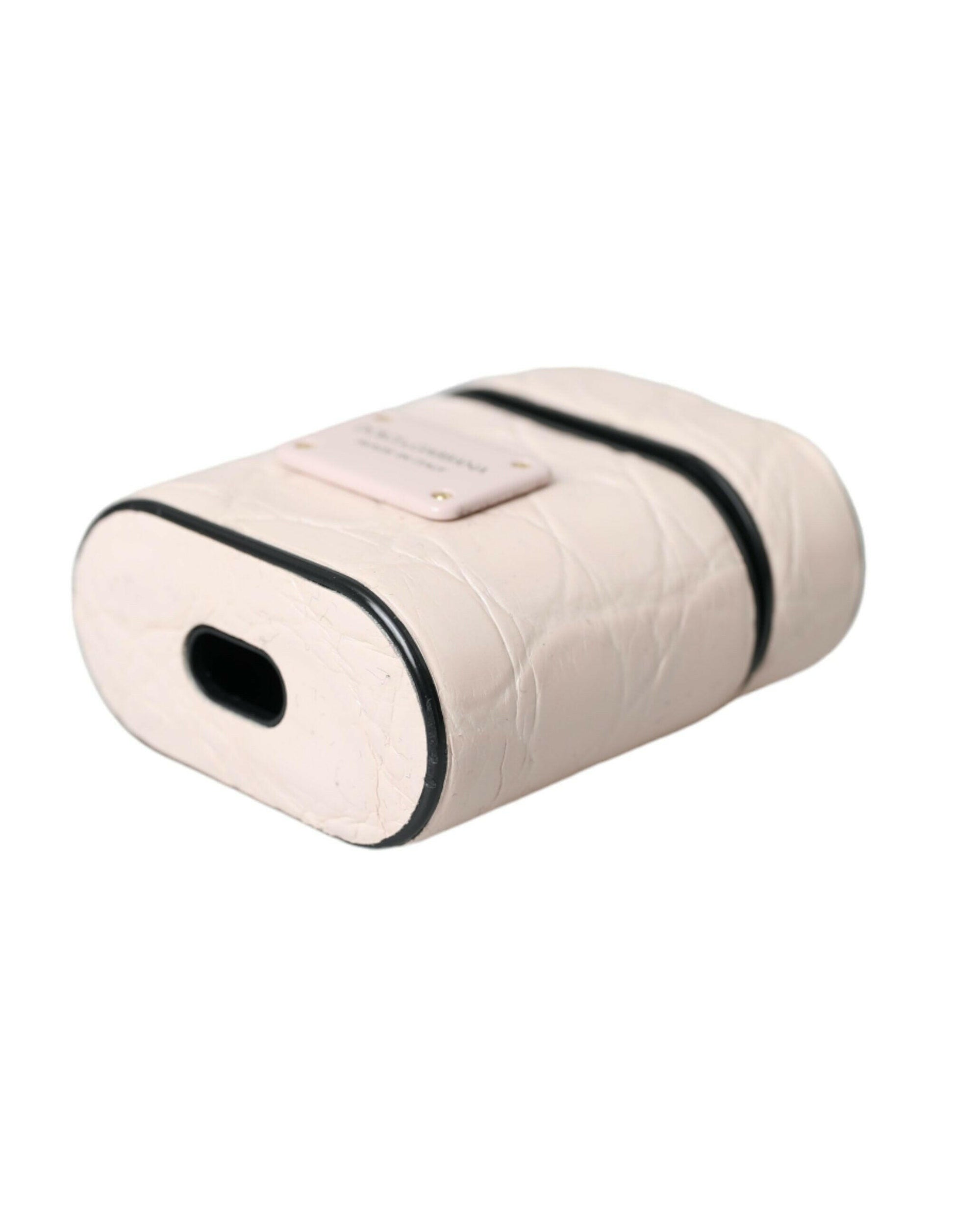 Dolce & Gabbana Light Pink Leather Metal Logo Plaque Airpods Case