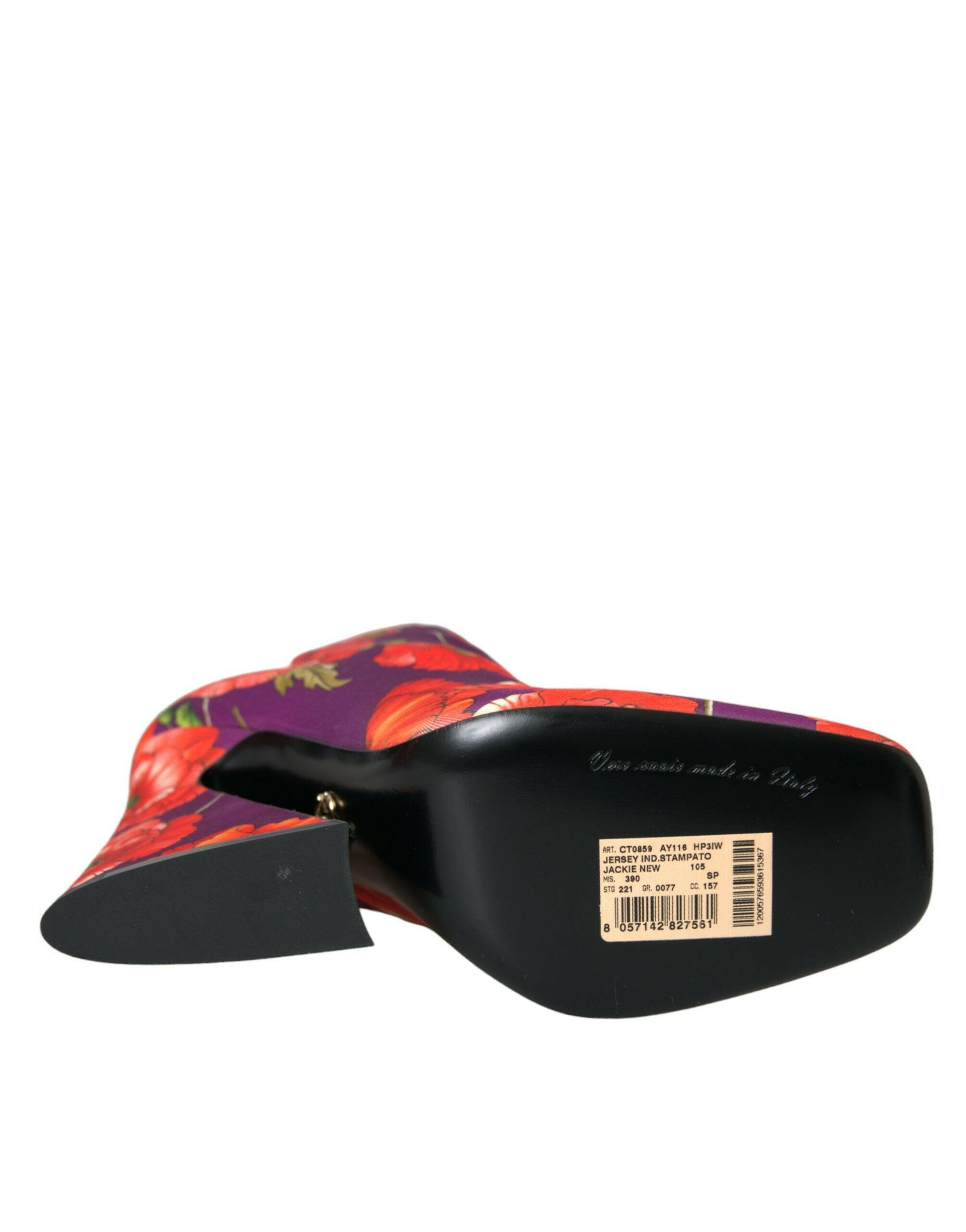Dolce & Gabbana Purple Floral Jersey Stretch Boots Shoes