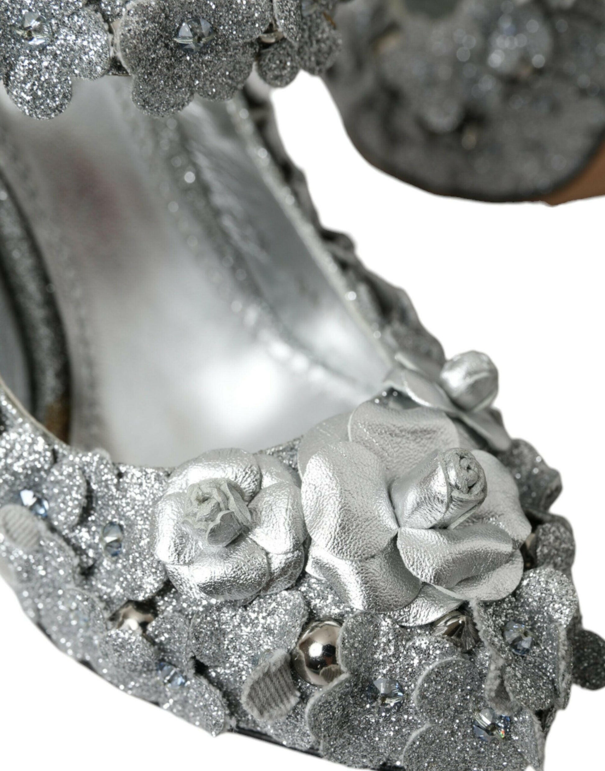 Dolce & Gabbana Silver Floral Crystal Mary Jane Pumps Shoes