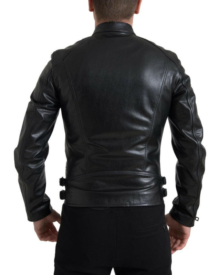 Dolce & Gabbana Black Leather Zipper Coat Men Jacket
