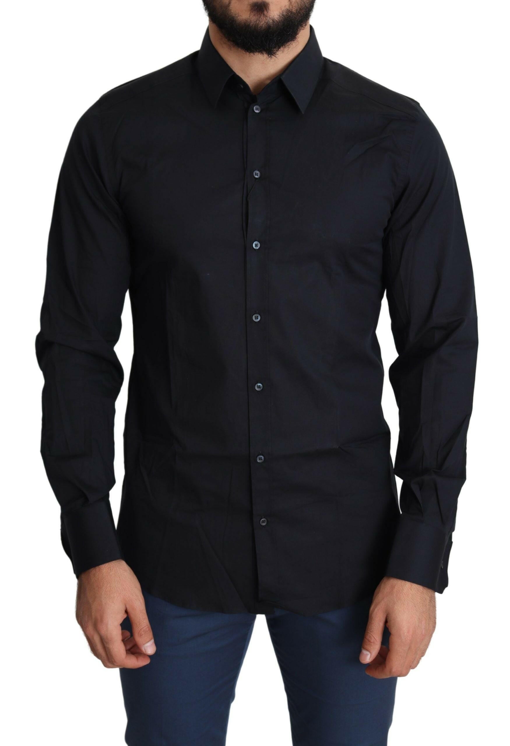 Dolce & Gabbana Blue Cotton Formal GOLD Dress Shirt