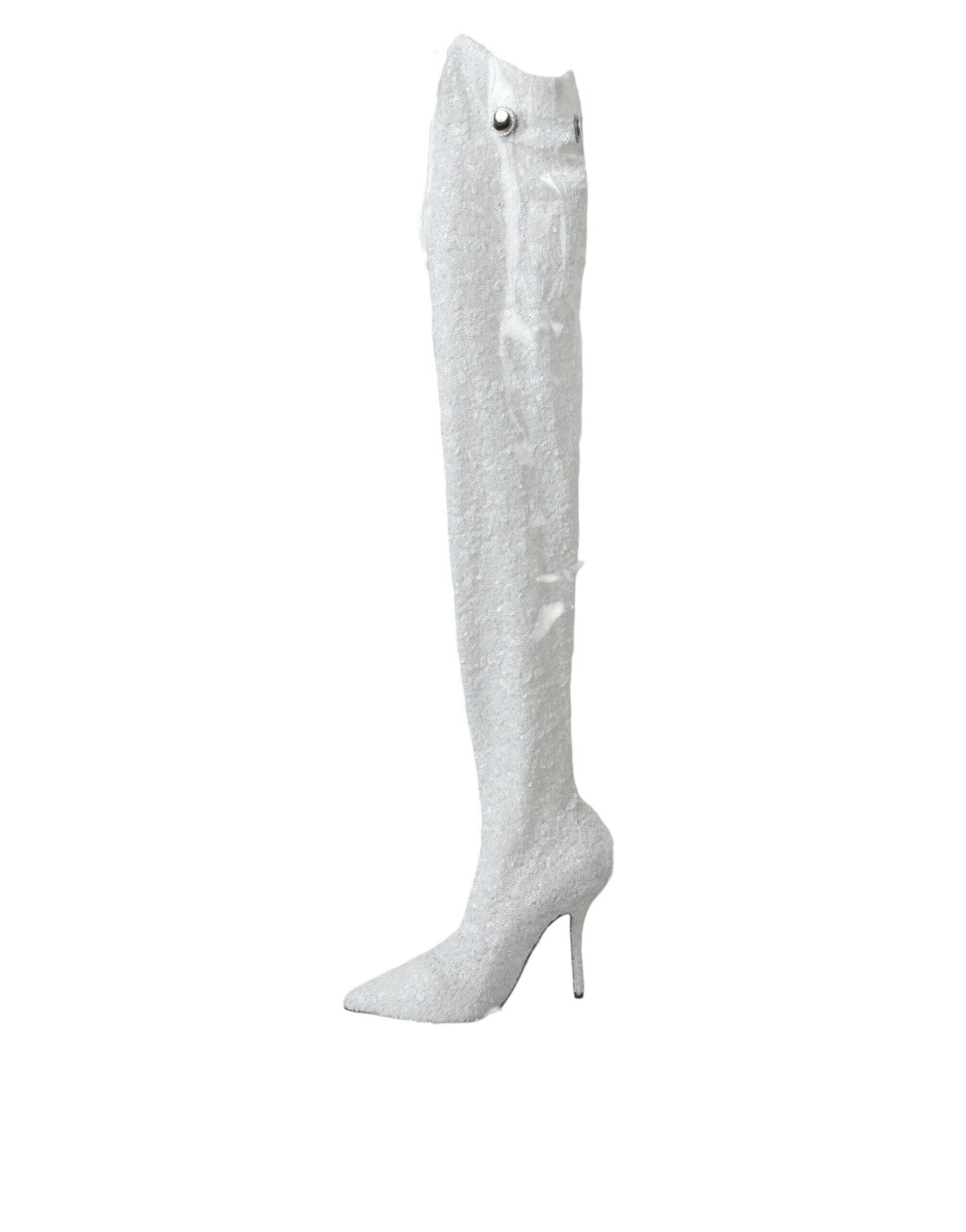 Dolce & Gabbana White Heels Stiletto Knee High Boots Shoes