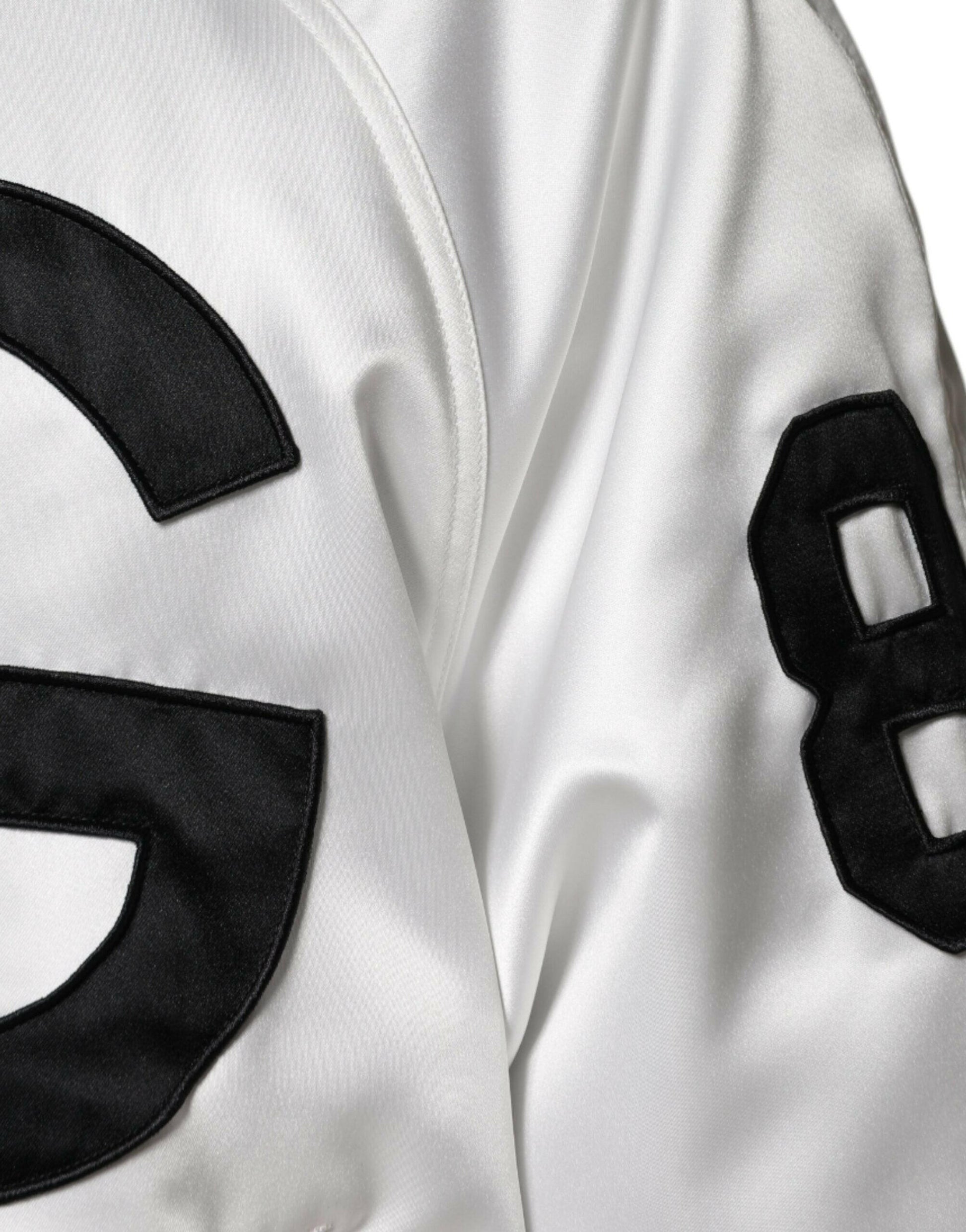 Dolce & Gabbana White Polyester Logo Full Zip Bomber Jacket